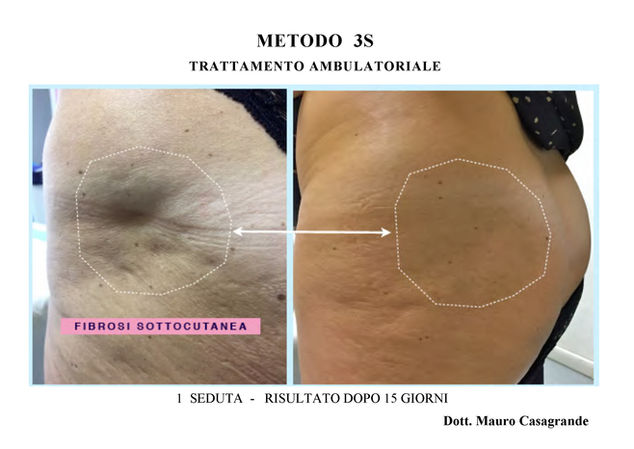 METODO 3S per il trattamento delle retrazioni o fibrosi cutanee tipiche della cellulite di secondo-terzo grado o post trama o esiti di liposuzione (vedi foto)